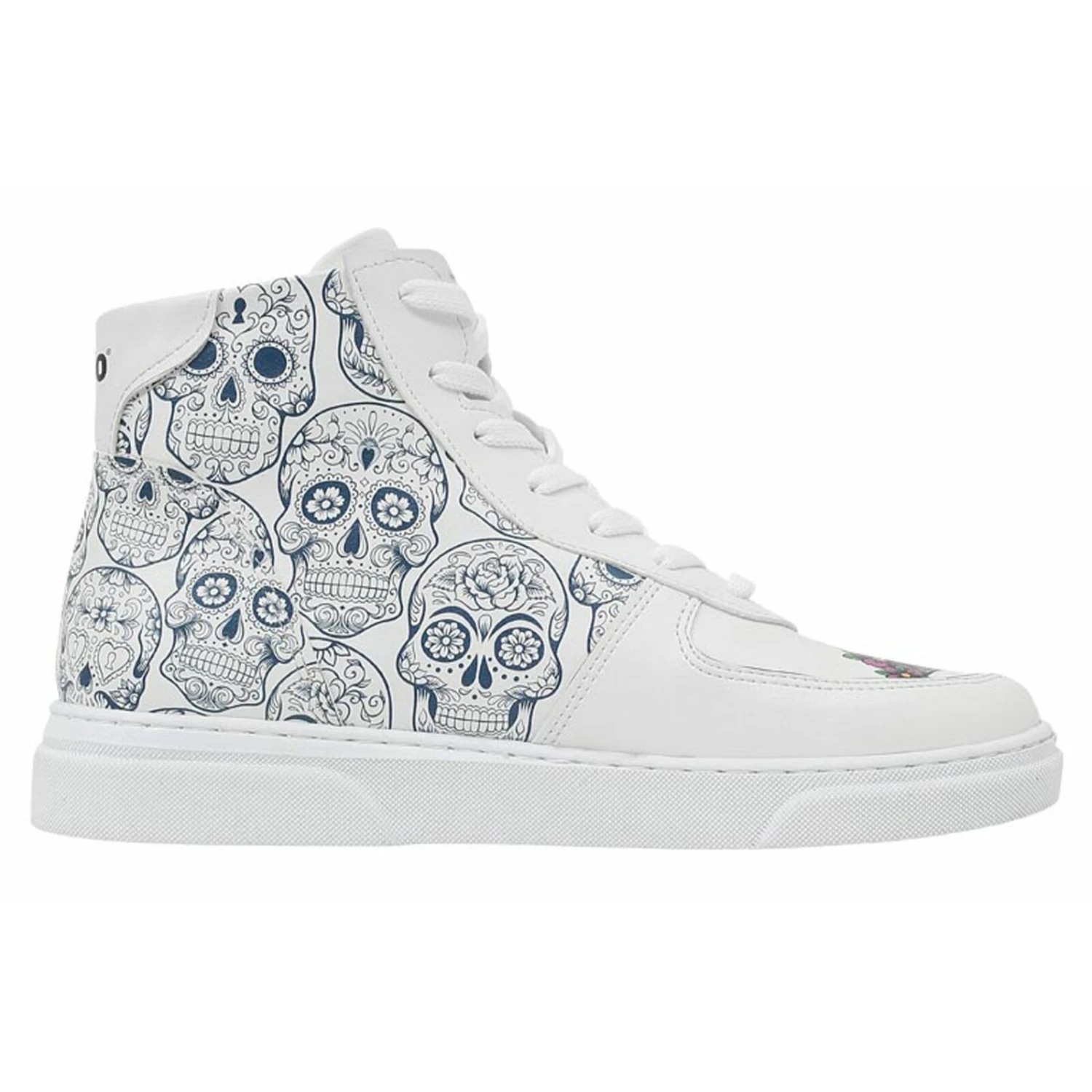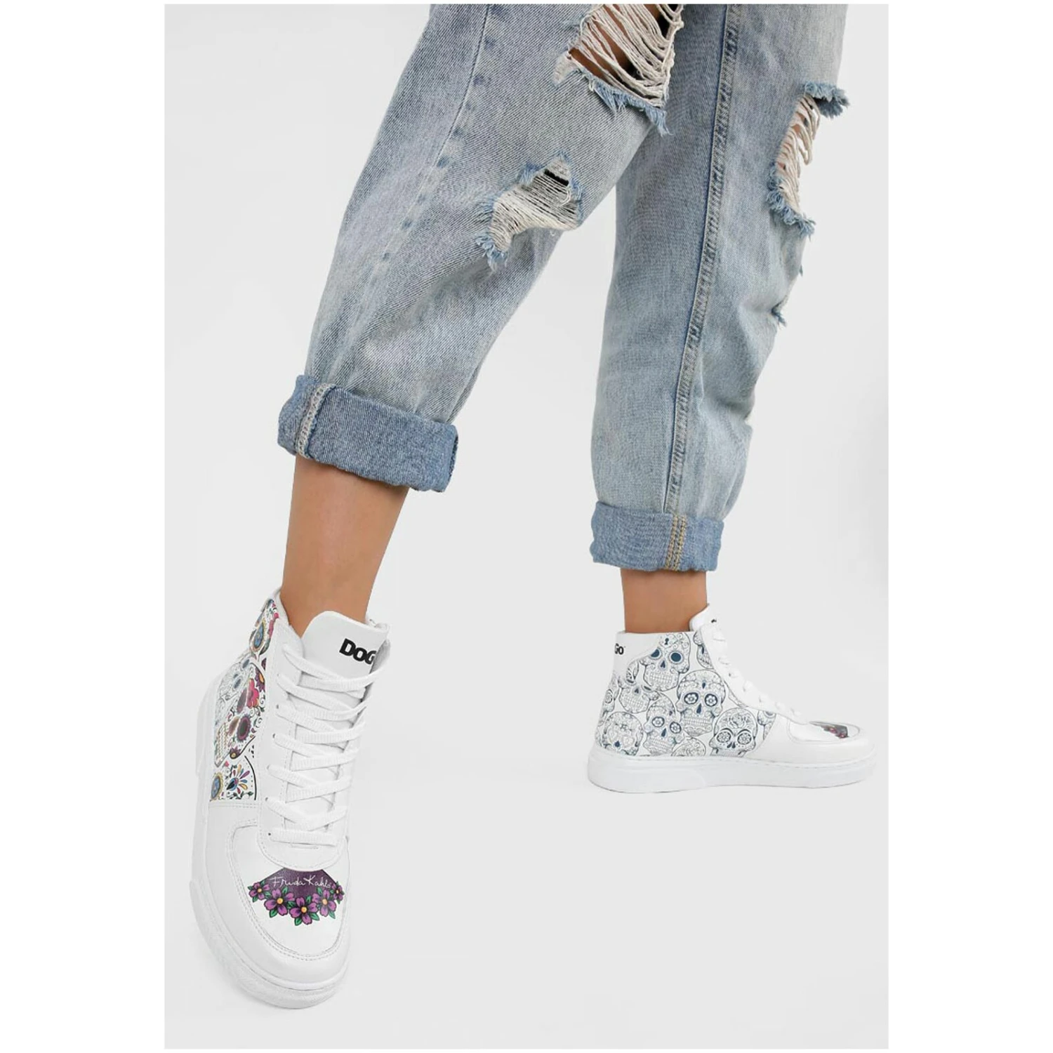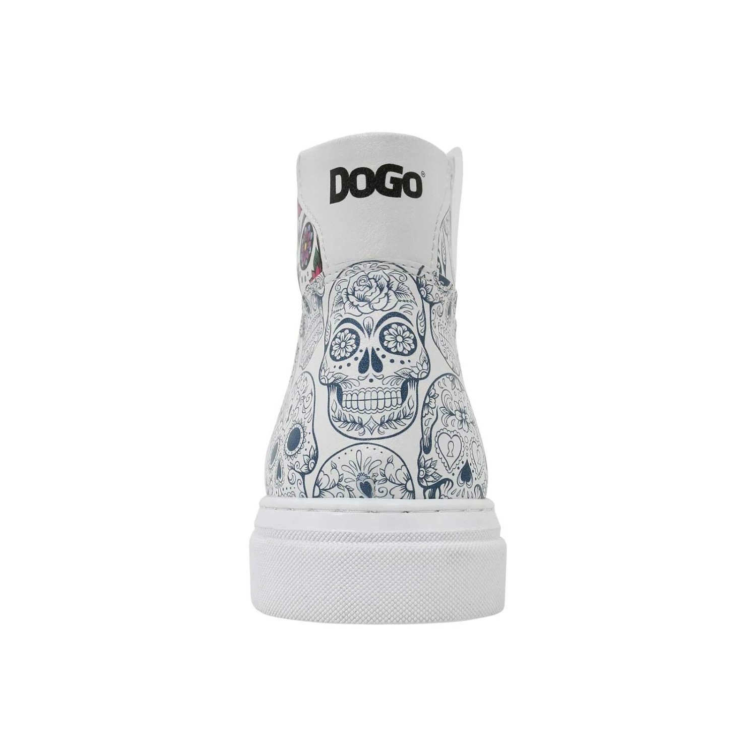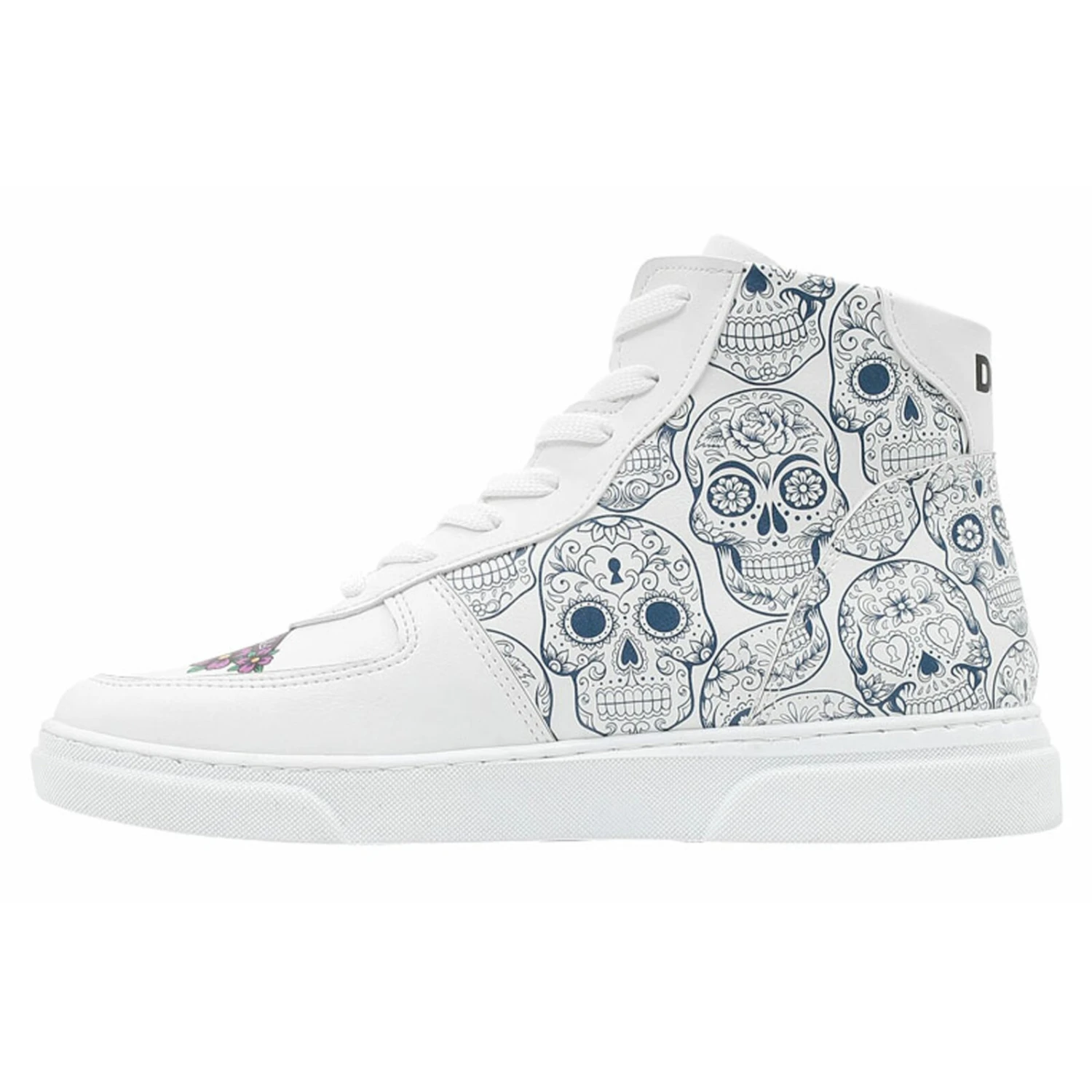 „Remembrance of Frida Kahlo“ ist eines unserer beliebtesten Designs aus der DOGO x Frida Kahlo Kollektion. Es zeigt Frida Kahlo, die Ikone ihres Heimatlandes Mexiko und eine der bedeutendsten Künstlerinnen des 20.Jahrhunderts, und typisch mexikanische Calaveras. Dieses farbenfrohe Motiv kommt auf den weißen High Top Sneakern besonders zur Geltung und zieht garantiert alle Blicke auf sich.