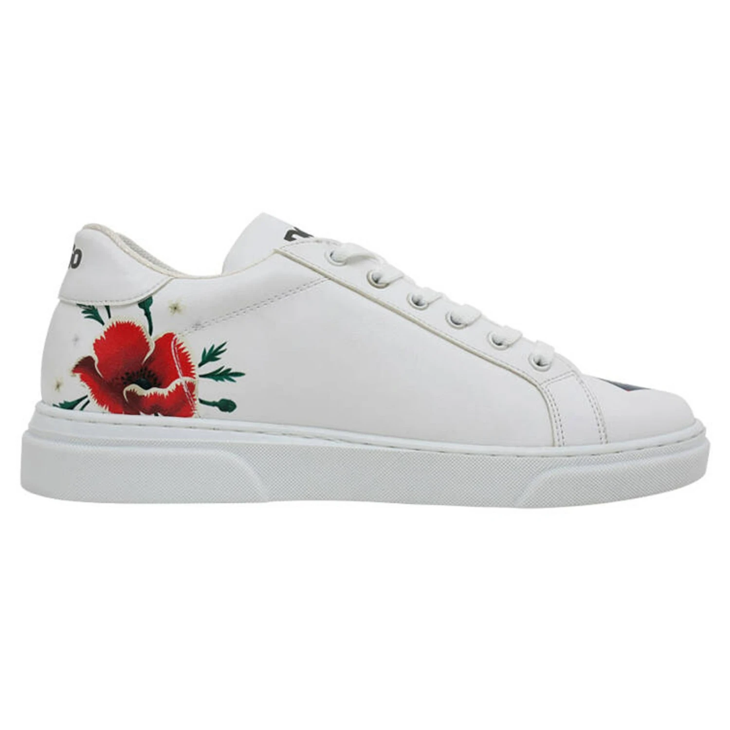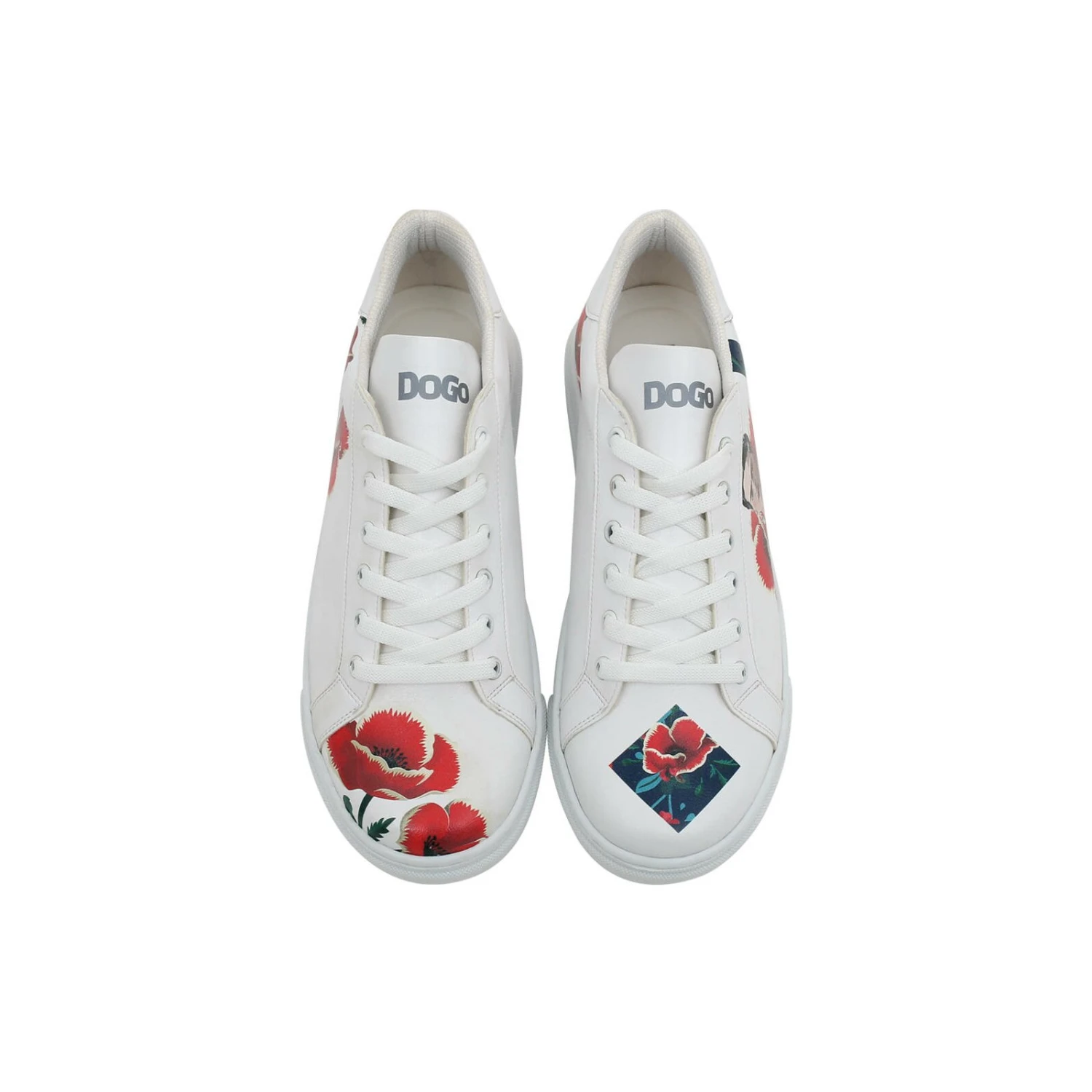 Die neuen Ace Sneakers im Design „Viva La Vida Frida Kahlo“ sind ein echter Hingucker. Mit diesen Damen Sneakers sind Ihnen bewundernde und neidische Blicke sicher. Das schlichte weiße Schuhmodell, das sich sowohl sportlich als auch elegant kombinieren lässt, begeistert mit auffälligen Farbakzenten. So schmücken rote Blumen und ein Portrait von Frida Kahlo dieses Modell, das zu Ehren der mexikanischen Künstlerin kreiert wurde. Die DOGO Ace Sneakers werden allesamt aus hochwertigem Kunstleder hergestellt und sind zu 100 % vegan. Die pfiffige 6-Loch-Schnürung und die bequemen Schuhsohlen versprechen ein außergewöhnliches Tragegefühl.