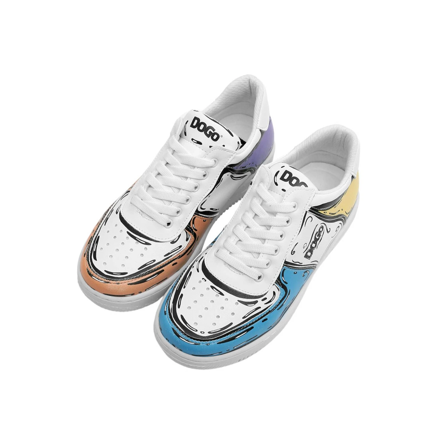 Diese Sneaker im Design „DOGO Sketch“ sind absolute Hingucker. Die Oberfläche ist in mehrere Partien unterteilt, die alle in einer anderen Farbe im Pop-Art Stil bedruckt sind. So wird der Schuh selbst zum Kunstwerk. Mit den neuen Dice Sneakern kommt nun ein völlig neues Schuhmodell ins DOGO-Sortiment. Der sportliche Look und das bequeme vegane Material machen diesen Sneaker zum perfekten Alltagsbegleiter. Doch nicht nur der ultimative Tragekomfort, sondern auch die kreativen und einzigartigen Designs verleihen den DOGO Dice das gewisse Etwas und machen sie zur perfekten Ergänzung für deinen individuellen Look.