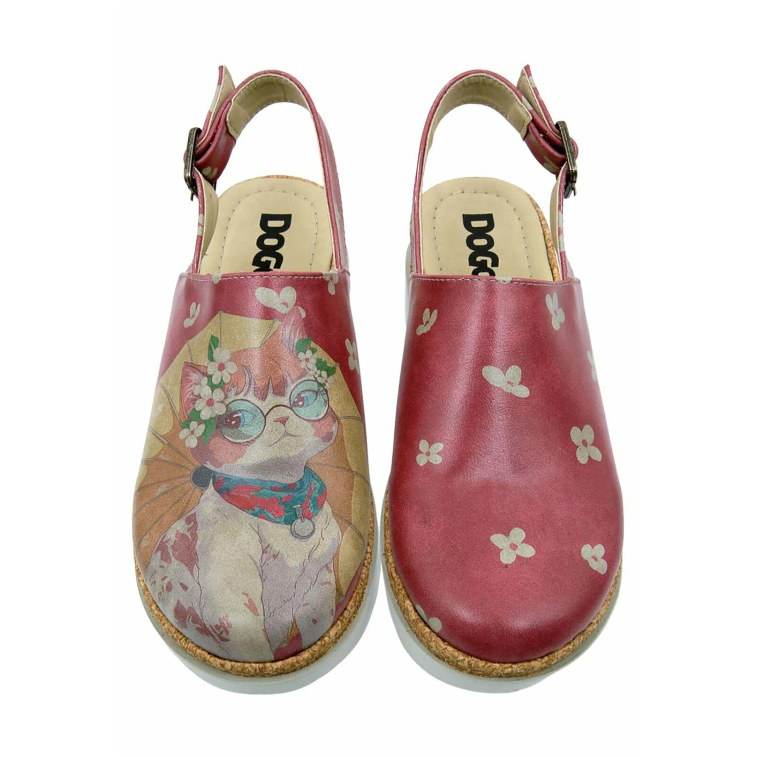 Diese Sandalen zeichnen sich durch ihr einzigartiges Design und ihren unverkennbaren DOGO Charme aus. Das auffällige Katzengesicht auf der Vorderseite der Schuhe ist ein Blickfang, während das warme Bordeauxrot mit dezenter Blumenverzierung einen eleganten und femininen Touch verleiht. Die Verwendung von veganen Materialien und die handgefertigte Verarbeitung unterstreichen die Philosophie der Marke, Mode nachhaltig und verantwortungsbewusst zu gestalten. Der Korkabsatz bietet nicht nur optimalen Tragekomfort, sondern rundet das naturverbundene Design perfekt ab.