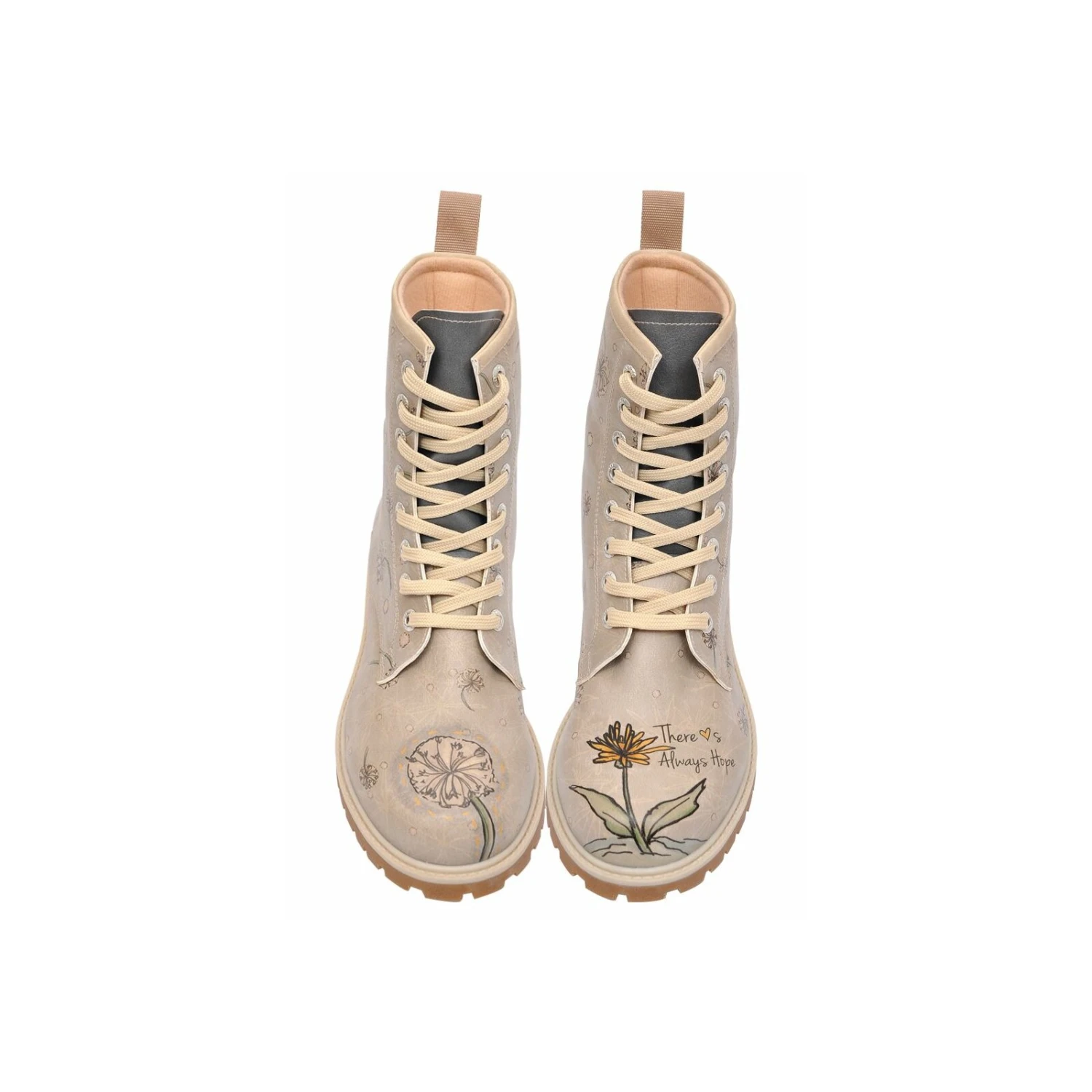 Selbst, wenn wir manchmal das Gefühl haben, dass die ganze Welt sich gegen uns verschworen hat – diese exklusiven DOGO Boots erinnern uns daran, dass wir nie die Hoffnung verlieren sollten. Es ist wie beim Löwenzahn: Für ein paar Wochen im Jahr können wir uns an Wiesen voller wunderschöner gelber Blumen erfreuen. Aber diese Schönheit ist vergänglich, denn eines Tages sind die sonnengelben Blüten plötzlich nicht mehr zu sehen und statt ihrer krönen kleine weiße und flaumig aussehende Schirmchen die Blumen. Diese werden dann vom Wind weggetragen – doch dort, wo sie landen, werden schon bald wieder neue Löwenzahn-Blumen blühen. Es ist ein ewiger Kreislauf, der sich in regelmäßigen Abständen wiederholt. Unsere DOGO Boots erinnern an diesen Kreislauf, denn auf dem einen Schuh ist vorn eine Pusteblume abgebildet, während auf dem anderen eine hübsche gelbe Blüte zu sehen ist. Solange Sie also einen Fuß vor den anderen setzen, blüht auch der Löwenzahn immer wieder auf. Mit jedem Blick nach unten auf Ihr Schuhwerk werden Sie sich so auch an schlechten Tagen immer wieder daran erinnern, dass am Ende Ihres Weges stets etwas Wunderbares auf Sie wartet – solange Sie die Hoffnung nicht verlieren.