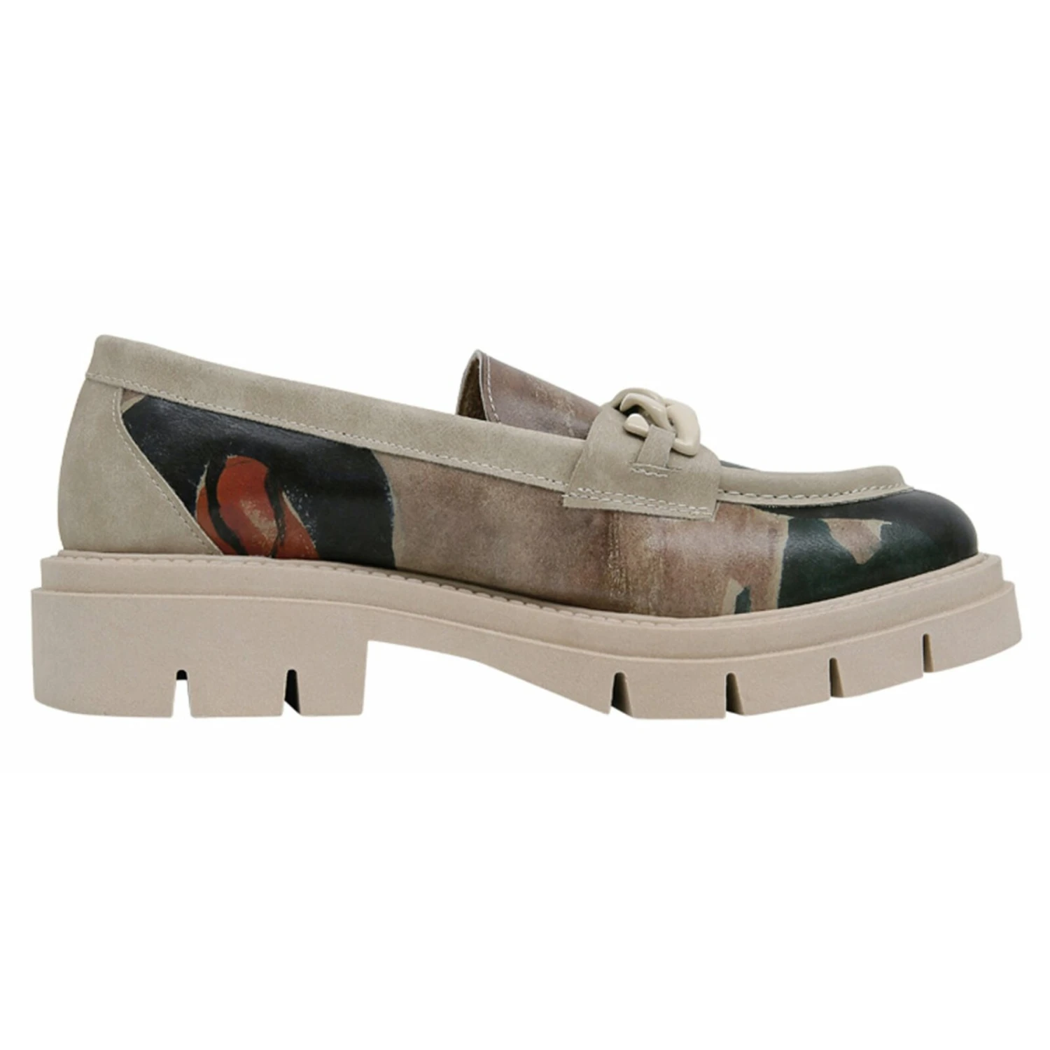 Das Design „Petals“ ist in den Farben Beige, Creme, Dunkelgrün und Schwarz gehalten. Damit passen sich diese Loafer problemlos jedem Style an und verleihen eine außergewöhnliche Note.