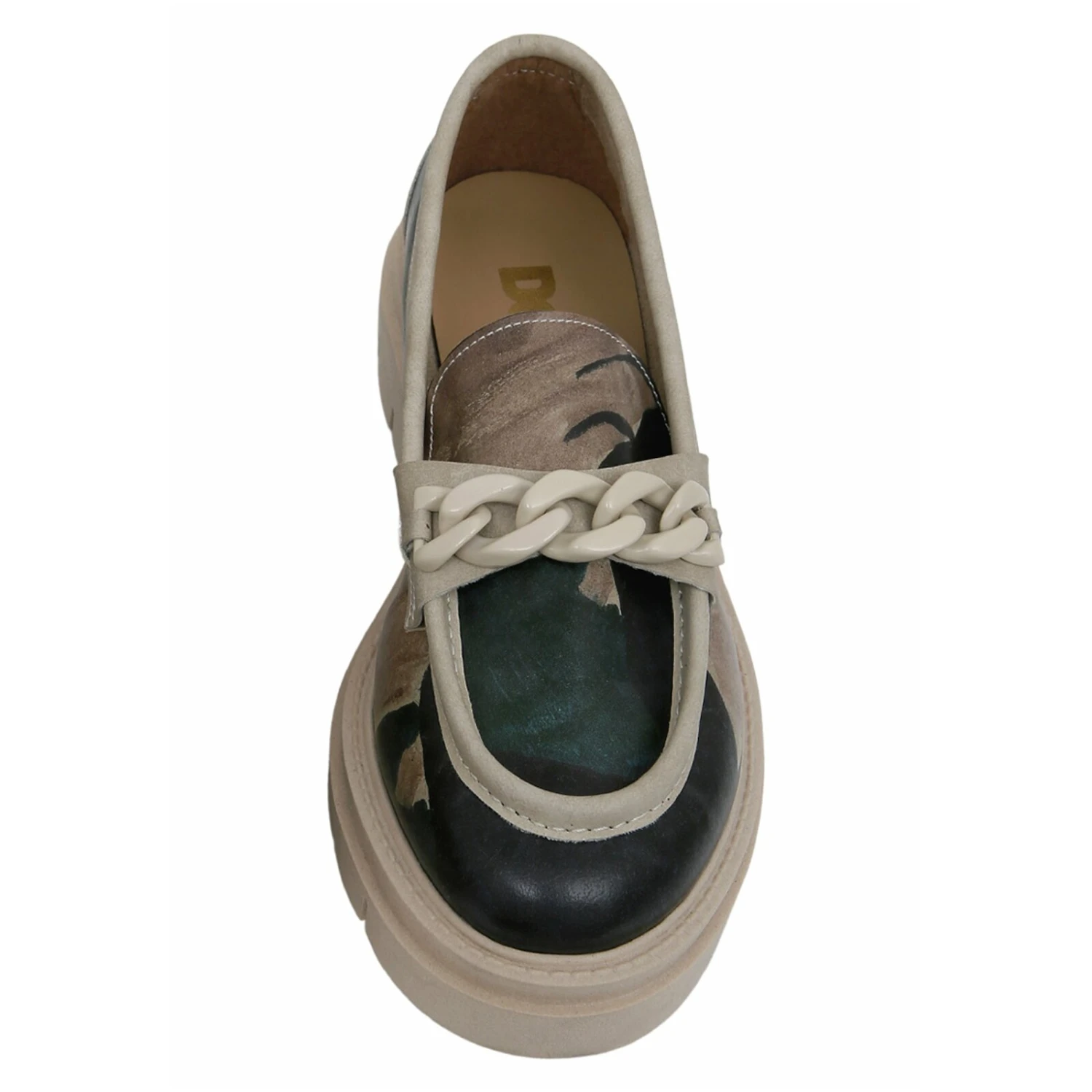 Die neuen DOGO Cindy vereinen Eleganz und Komfort. Diese extravaganten Loafer sind mit raffinierten Details, wie der dekorativen Metallkette auf dem Spann und einer Mokassinnaht, geschmückt. Die chunky Sohle sorgt dabei für einen modernen Look und bietet zusätzlich optimalen Tragekomfort. Authentisch und unverwechselbar sind die DOGO-typischen Prints, die die Cindy Loafer zu einem stylischen Statement machen.