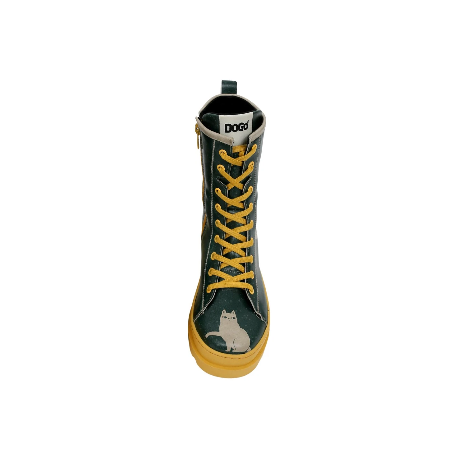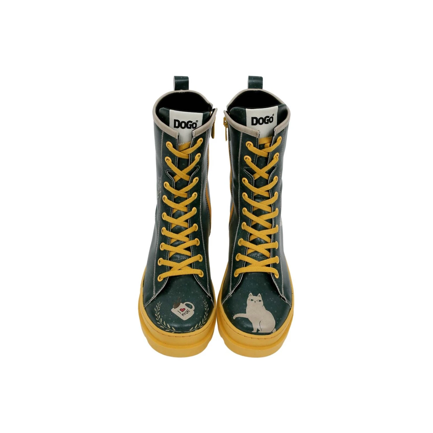 Hello Plateau! Plateaustiefel gehören derzeit eindeutig zu den absoluten Must-haves der Herbst- und Wintersaison. Statement-Schuhe mit hohen Plateausohlen liegen im Trend und mit diesen bunten DOGO Plateauboots sind Sie garantiert der Blickfang in diesem Herbst. Das Alleinstellungsmerkmal dieser farbenfrohen Plateauboots sind ihre außergewöhnlichen Muster. Die Designs werden durch farblich passende Details, wie zum Beispiel bunte Schnürsenkel, Plateausohlen oder Reißverschlüsse abgerundet. Die DOGO Gisele Boots sind mit einer circa 3,5 Zentimeter hohen Plateausohle ausgestattet, die nicht nur super weich und bequem, sondern auch auffällig und individuell ist. Die leichten Gisele Boots geben Ihnen ein perfektes Tragegefühl und sind weit geschnitten, sodass Sie sie auch mit warmen Socken perfekt tragen können. Um das An- und Ausziehen der bunten Plateauboots zu erleichtern, wurden an den Innenseiten robuste Reißverschlüsse verarbeitet.