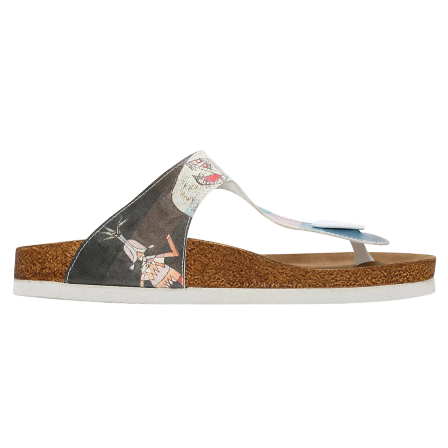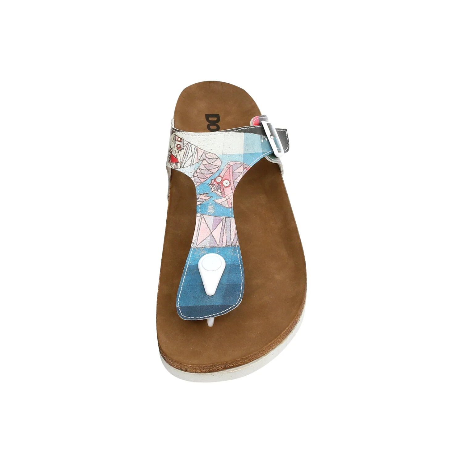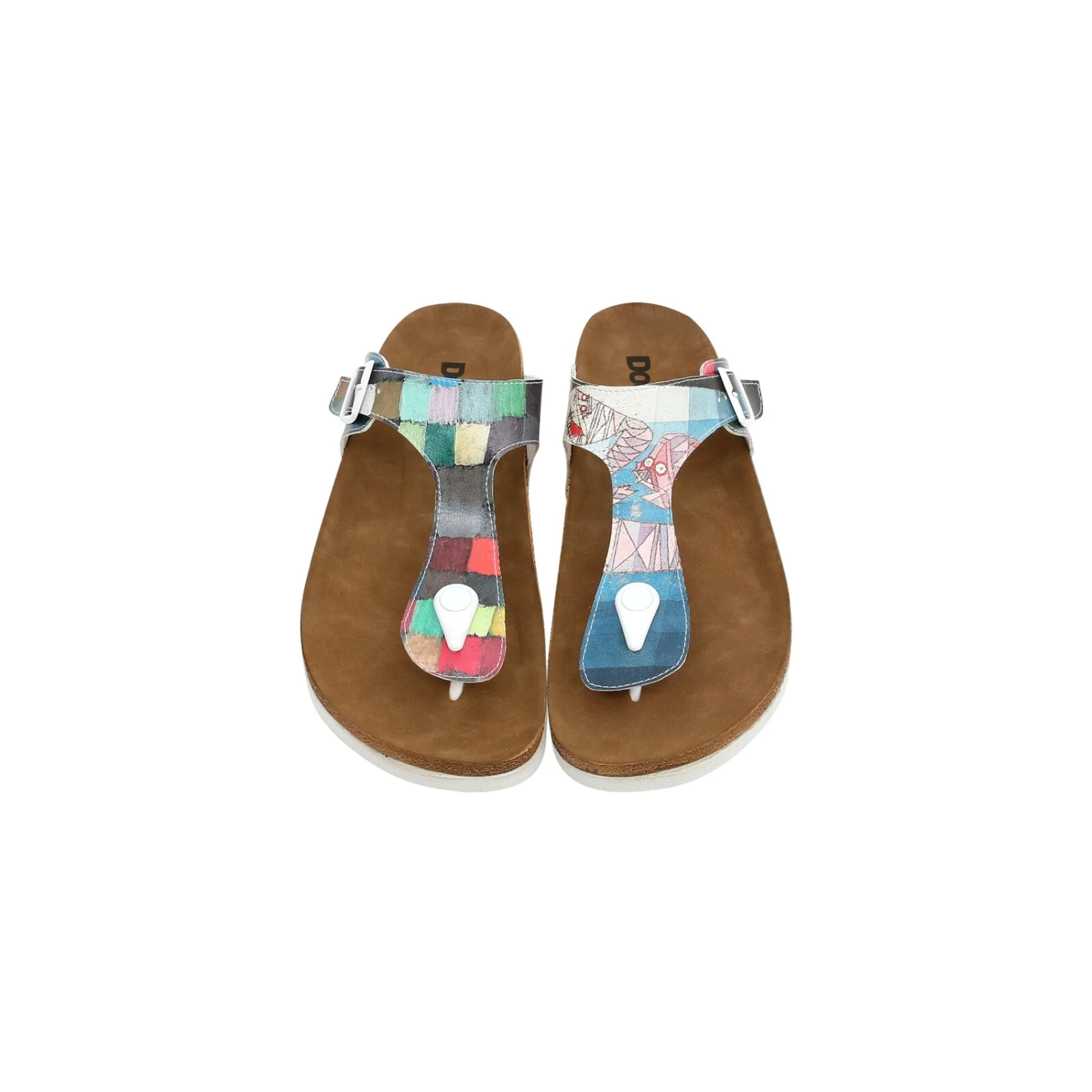 Sie sind auf der Suche nach einer lässigen Damensandale, die Sie im Sommer am liebsten gar nicht mehr ausziehen möchten? Unsere Zehentrenner-Sandale Lila vereint einen einzigartigen Look mit hohem Tragekomfort. Das liegt vor allem an dem federleichten, bequemen Fußbett, das Sie wie auf Wolken gehen lässt. Durch das Zehentrennerriemchen bekommt Ihr Fuß den nötigen Halt und das An- und Ausziehen der Sandale geht wie von selbst. Unser neues Design „Yabara with Fish” begeistert mit einem kunterbunten Muster aus verschiedenfarbigen Elementen. Die rechte Sandale wird von zahlreichen bunten Kästchen geziert, während sich auf der linken Sandale auch illustrierte Fische in tollen Sommerfarben verewigt haben.