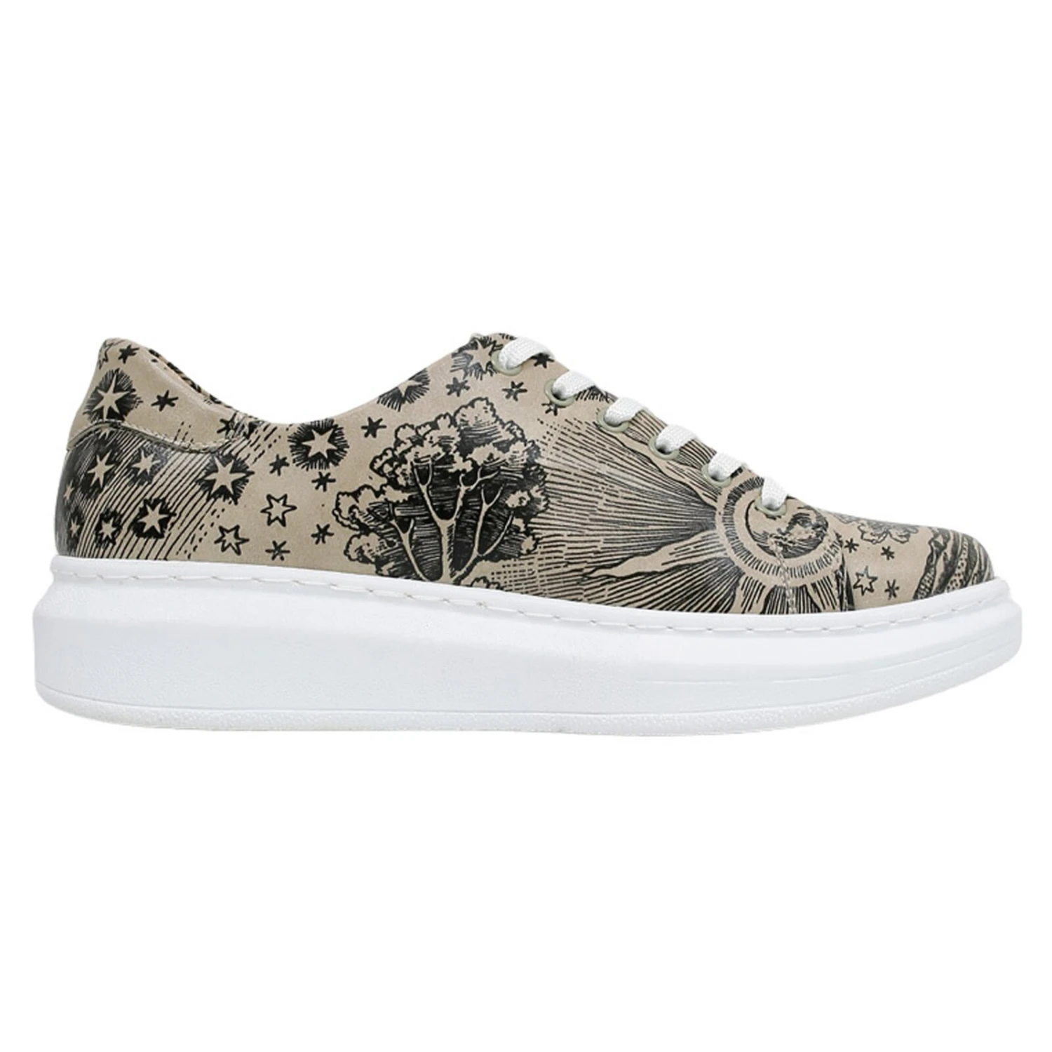 Sportlich und stylisch präsentiert sich das neue DOGO-Modell Myra in vielen verschiedenen Designs. Durch die vier Zentimeter hohe Sohle wird ein aktueller Trend aufgegriffen, der aus der Modewelt nicht mehr wegzudenken ist: Plateau. Mit diesem Schuh heben sie sich sprichwörtlich von der Masse ab. Das neue Modell wird mit den für DOGO spezifischen Mustern und Designs abgerundet. Trotz der Plateausohle wirkt das Modell Myra keineswegs klobig am Fuß. Tragekomfort wird hier ganz großgeschrieben, denn Innen ist eine neue angenehm weiche Sohle verarbeitet worden, damit sich Ihre Füße den ganzen Tag in den DOGO Schuhen wohlfühlen. Eine Acht-Loch-Schnürung sorgt für den nötigen Halt am Fuß. Auch bei diesem Trend-Sneaker setzt DOGO ausschließlich auf vegane Materialien und beste Qualität.