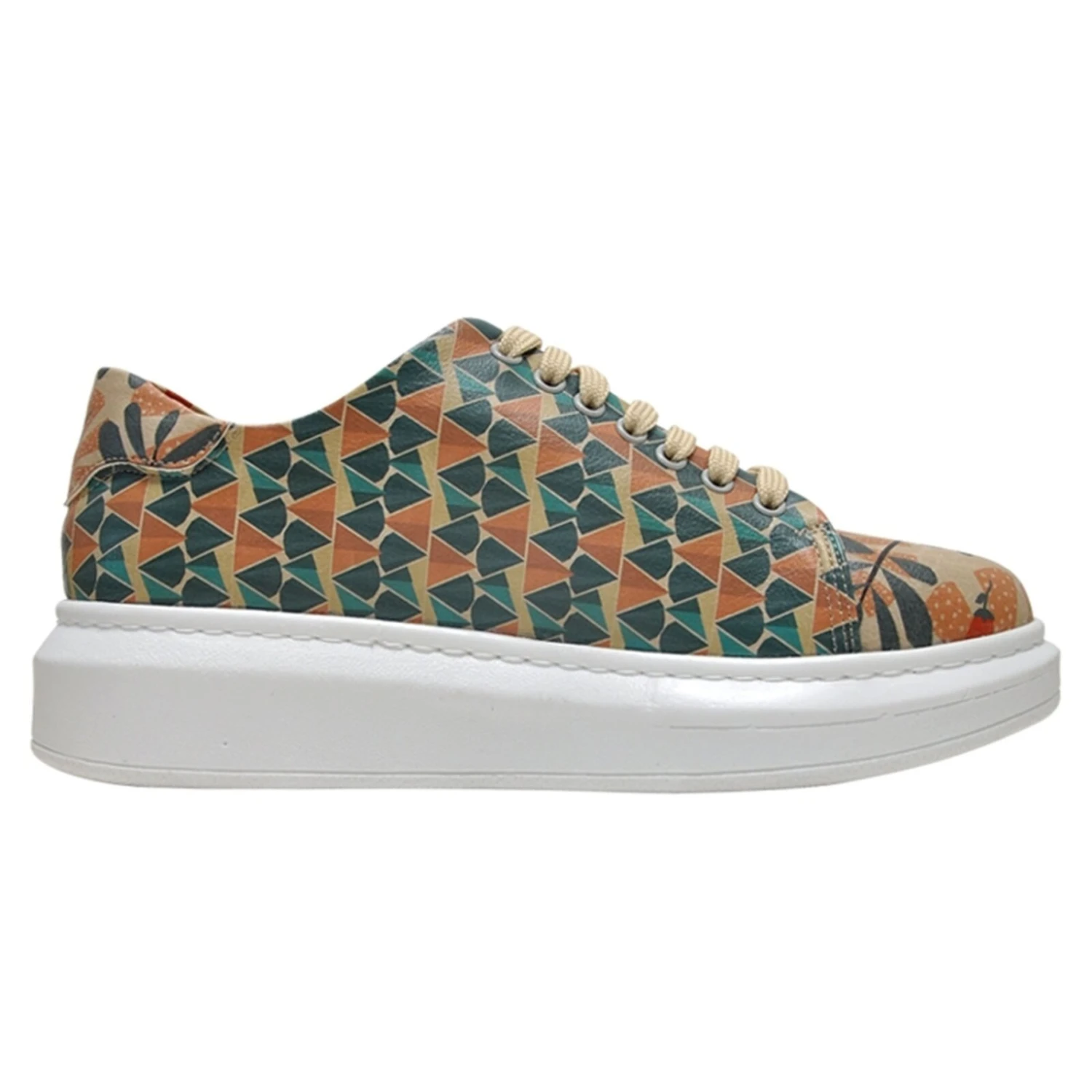 Sportlich und stylisch präsentiert sich das neue DOGO-Modell Myra in vielen verschiedenen Designs. Durch die vier Zentimeter hohe Sohle wird ein aktueller Trend aufgegriffen, der aus der Modewelt nicht mehr wegzudenken ist: Plateau. Mit diesem Schuh heben sie sich sprichwörtlich von der Masse ab. Das neue Modell wird mit den für DOGO spezifischen Mustern und Designs abgerundet. Trotz der Plateausohle wirkt das Modell Myra keineswegs klobig am Fuß. Tragekomfort wird hier ganz großgeschrieben, denn Innen ist eine neue angenehm weiche Sohle verarbeitet worden, damit sich Ihre Füße den ganzen Tag in den DOGO Schuhen wohlfühlen. Eine Acht-Loch-Schnürung sorgt für den nötigen Halt am Fuß. Auch bei diesem Trend-Sneaker setzt DOGO ausschließlich auf vegane Materialien und beste Qualität.